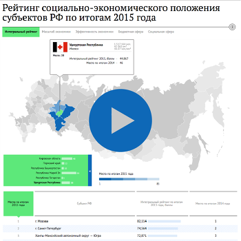 РИА Рейтинг – 15 июн. К Петербургскому международному экономическому форуму (ПМЭФ-2016), который стартует в Санкт-Петербурге 16 июня, рейтинговое агентство «РИА Рейтинг» медиагруппы МИА «Россия сегодня», подготовило очередной, шестой по счету, рейтинг социально-экономического положения субъектов РФ. Рейтинг, построенный на основе агрегирования ключевых показателей регионального развития за 2015 год, позволяет дать ответ на вопрос о позициях того или иного региона на экономической карте России. Результаты рейтинга позволяют не только дать комплексную сравнительную оценку позиций регионов, но и определить динамику их развития, которая в силу влияния различных факторов весьма неравномерна.